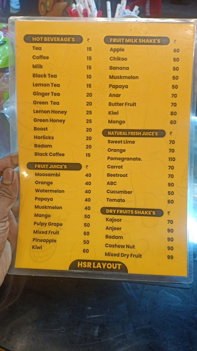 The menu at ON THE GO is a salute to freshness, featuring an array of invigorating options that cater to all tastes. From their delectable Fruit Milk Shakes to revitalizing Natural Fresh Juices and rich Dry Fruit Shakes, every item is a delight. Imagine savoring a chocolate-rich Banana Milkshake at just ₹50, or indulging in a refreshing Pomegranate Juice for ₹110 that’s bursting with tangy flavors. If you're in the mood for something uniquely Indian, their specialty Butter Fruit Milkshake (₹70) is a must-try!